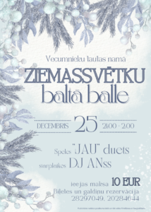 Vecumnieku tautas namā 25. decembrī plkst. 21 Ziemassvētku Baltā balle.