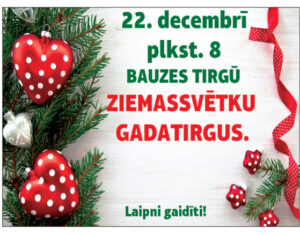 Bauzes tirgū 22. decembrī plkst. 8 Ziemassvētku gadatirgus.