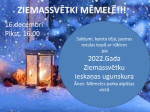 Skaistkalnē, Ānes-Mēmeles parka atpūtas vietā, 16. decembrī plkst. 16 Ziemassvētku ieskaņas ugunskurs.