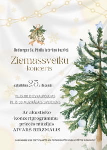 Budbergas Sv. Pāvila luterāņu baznīcā 25. decembrī plkst. 15 dievkalpojums, plkst. 16 Ziemassvētku koncerts “Par mums”.