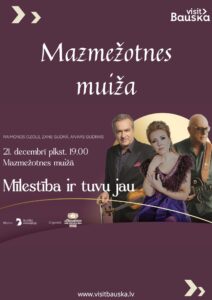 Mazmežotnes muižā 21. decembrī plkst. 19 Ziemassvētku koncerts «Mīlestība ir tuvu jau» – Raimonds Ozols (vijole, balss), Aivars Gudrais (ģitāra, balss), Zane Gudrā (taustiņi, balss).