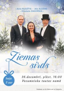 Vecumnieku tautas namā 26. decembrī plkst. 16 Ziemassvētku koncerts «Ziemas sirds» kopā ar Aini Rudzīti, Ati Auzānu un Elizabeti Zagorsku.