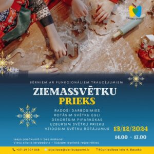 Bauskas daudzfunkcionālajā sociālo pakalpojumu centrā Rūpniecības ielā 9 13. decembrī no plkst. 14 līdz 17 Ziemassvētku pasākums bērniem ar funkcionalitātes traucējumiem «Ziemassvētku prieks».