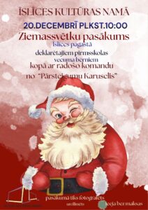 Īslīces kultūras namā 20.decembrī plkst. 10 Ziemassvētku pasākums Īslīces pagastā deklarētajiem pirmsskolas vecuma bērniem kopā ar radošo komandu no «Pārsteiguma karuselis».
