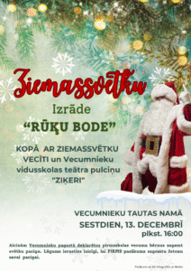 Vecumnieku tautas namā 13. decembrī plkst. 16 Ziemassvētku pasākums pirmskolas bērniem «Rūķīšu eglīte».
