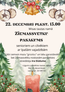 Misas tautas namā 22. decembrī plkst. 15 Ziemassvētku pasākums senioriem un cilvēkiem ar īpašām vajadzībām.