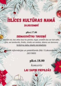 Īslīces kultūras namā 20.decembrī plkst. 17 Ziemassvētku tirdziņš,