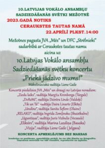 Ceraukstes tautas namā 22. aprīlī plkst. 14 10. Latvijas vokālo ansambļu sadziedāšanās svētku koncerts «Priekā jādzīvo mums!».