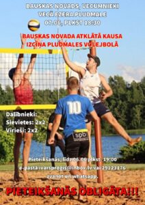 Vecumnieku vecā ezera pludmalē 7. jūnijā plkst. 18.30 Bauskas novada atklātā kausa izcīņa pludmales volejbolā.