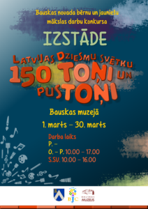 Bauskas muzejā no 1. līdz 30. martam Bauskas novada bērnu un jauniešu mākslas darbu konkursizstāde «Latvijas Dziesmu svētku 150 toņi un pustoņi».