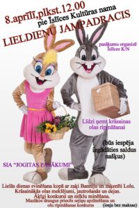 Pie Īslīces kultūras nama 8. aprīlī plkst. 12 Lieldienu jampadracis.