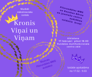 Rundāles multifunkcionālā centra zālē no 17. februāra līdz 9. martam Pilsrundāles MMS mākslas un mūzikas nodaļas un Bauskas BJC audzēkņu muzikāli mākslinieciska izstāde «Kronis Viņai un Viņam».