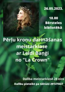 Viesturu pagasta Bērsteles bibliotēkā 26. maijā plkst. 18 pērļu kroņu darināšanas meistarklase ar Leldi Baņģi no «La Crown».