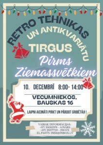 Vecumnieku tirgus laukumā 10. decembrī plkst 8 retro tehnikas un antikvariāta tirgus.