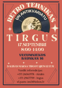 Vecumnieku tirgus laukumā 17. septembrī plkst. 8 – 14 retro tehnikas un antikvariātu tirgus.