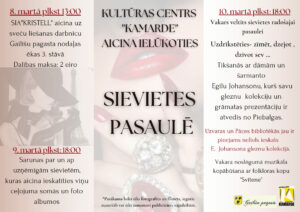 Kultūras centrā «Kamarde» 10. martā plkst. 18 sievietes radošajai pasaulei veltīts vakars.