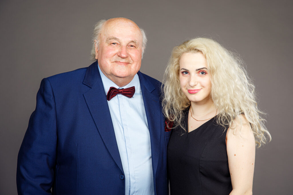 DIRIĢENTS kopā ar ilggadējo orķestranti Laumu Ozolu, kas ir filmas autore. Režisore 15 gadus muzicēja Gulbenes mūzikas skolas orķestrī, tāpēc uzticēties skolotājam ir viegli. Foto – Dmitrijs Šuļžics