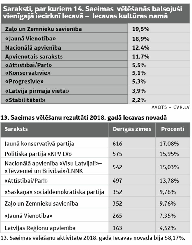 Vēlēšanu iecirknis Iecavā ir ne tikai lielākais Bauskas novadā, bet arī visā Latvijā. Iedzīvotāju aktivitāte šogad ir īpaši augsta, tādēļ iecirknim pat nācies lūgt papildu vēlēšanu aploksnes. Šeit 1. oktobrī balsojuši 4 207 pilsoņi (13. Saeimas vēlēšanās – 3606), derīgas zīmes – 4 152.