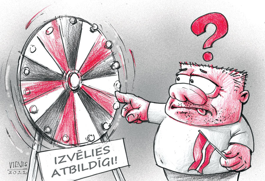 Vēlēšanām pakārtots viss,/ Kas vēl būs, kas noticis./ Partijas kā laimes rats,/ Miķelim pat apžilbst prāts./ Nederīgās metīs nost,/ Pārredzams kļūs Saeimas plosts,/ Īrēji būs listē pirmie./ Politikā jūtas stiprie,/ Rūpīgi tiks izpētīti,/ Kādi darbi nedarīti./ Otrā plānā vilcēji./ Karodziņu nesēji,/ Šodien necils kandidāts,/ Rīt jau Saeimas deputāts./ Miķelis aicina balsi/ Atdot par savu valsti,/ Paliksi malā, draugs,/ Tevi par lupatu sauks!