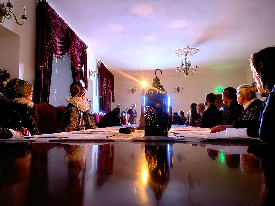 Ar aizraujošu stāstījumu un uzskatāmo materiālu R. Garklāva aprakstīja apgaismojuma veidus un lomu renesanses pilīs, demonstrējot seno apgaismes ķermeņu paraugus, tostarp Bauskas pils muzeja ekspozīcijās aplūkojamo priekšmetu attēlus. Praktiskajā nodarbības daļā dalībniekiem bija iespēja spēlēt senās galda spēles un izmēģināt roku kaligrāfijas tehnikā mākslinieces Lauras Matildes Ikertes vadībā. Iepazīstot senās spēles un rakstību, sanākušie uz brīdi varēja iejusties laikos, kad šīs nodarbes izgaismoja vien pieticīga sveču gaisma.