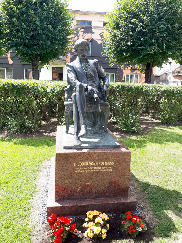 Pa ceļam uz Pakroju ceļotāji piestāja Žeimes pilsētiņā, kas atrodas netālu no Latvijas robežas Īslīces pagastā (no Bauskas 20 km). Tur šī gada jaunums apceļošanas akcijā ir nesen uzstādītais piemineklis pirmajam lietuviešu fiziķim un pasaulslavenam zinātniekam Teodoram Grothusam, kurš dzīvojis laikā no 1785. līdz 1822. gadam, slavu guvis ar elektrolīzes un fotoķīmijas likumu atklāšanu. Aprakstā pie pieminekļa var uzzināt, ka zinātnieka laboratorija, ko viņš bija izveidojis mātes īpašumā Geduču ciemā laikā no 1808. līdz 1822. gadam, šogad jūlijā inaugurēta Eiropas Fiziķu biedrības vēsturisko vietu sarakstā.