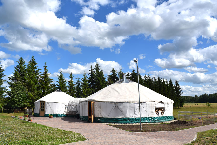 Neparastus iespaidus varēja gūt, šķiet, tik parastā objektā – aitu audzēšanas saimniecībā. Kristīnes un Jura Milišūnu saimniecība atrodas netālu no Latvijas robežas Biržu rajona Pačeraukstes pagastā (no Bauskas ap 30 km). Tuvojoties koordinātēs norādītajai fermas vietai, pa gabalu varēja redzēt aitu ganāmpulkus. Bet, iebraucot saimniecības centrā, skatam pavērās neparastu būvju komplekss – vairākas jurtas; ne cilvēku, ne aitu nemanīja. Izskatījās, ka te tikai būs jāsaskaita jurtas, kas ir apceļošanas akcijas kartītē ierakstītais uzdevums.