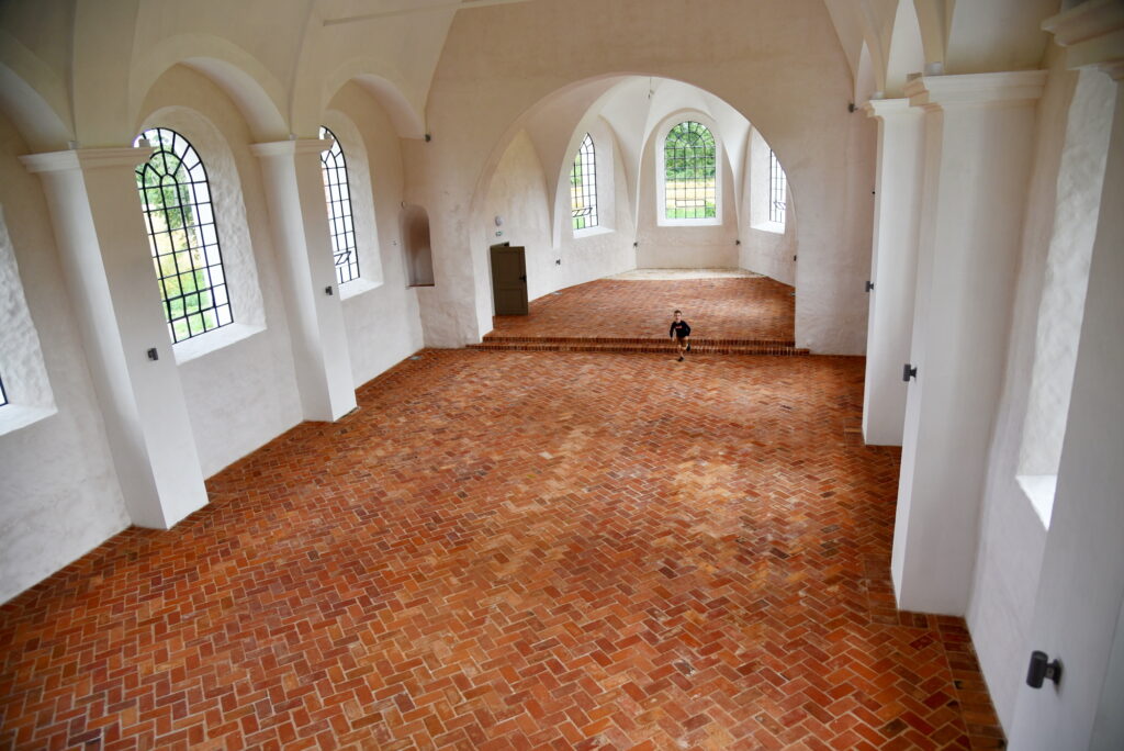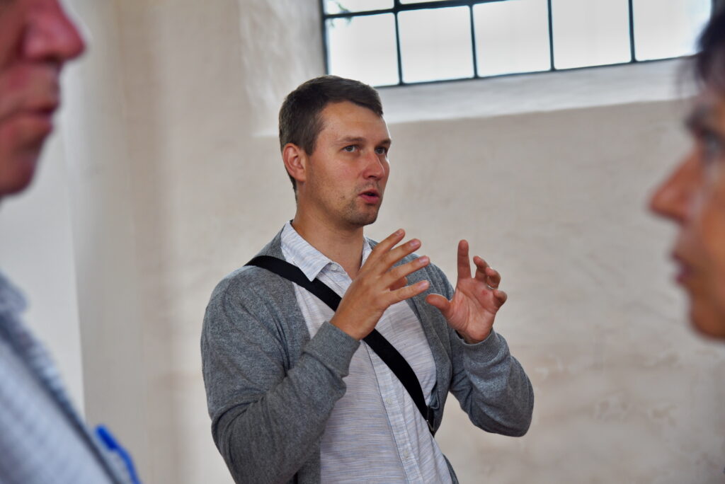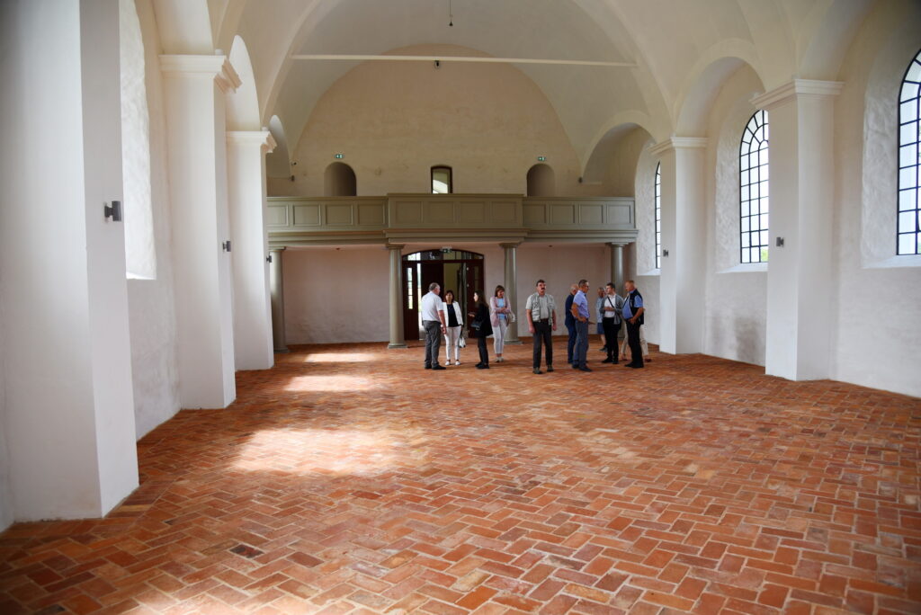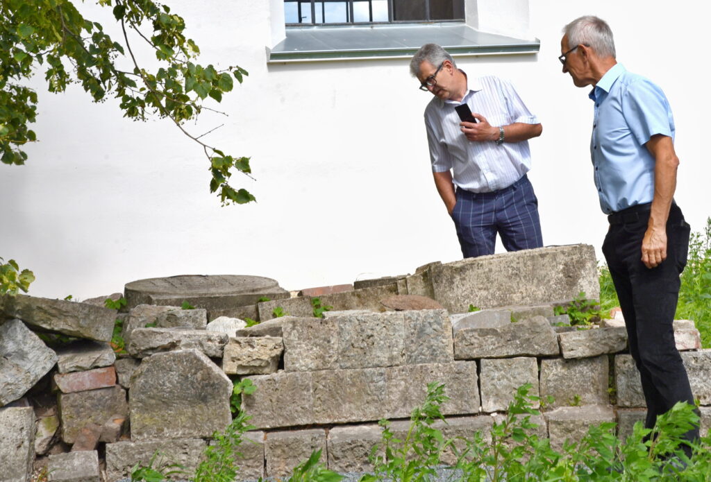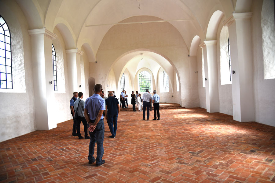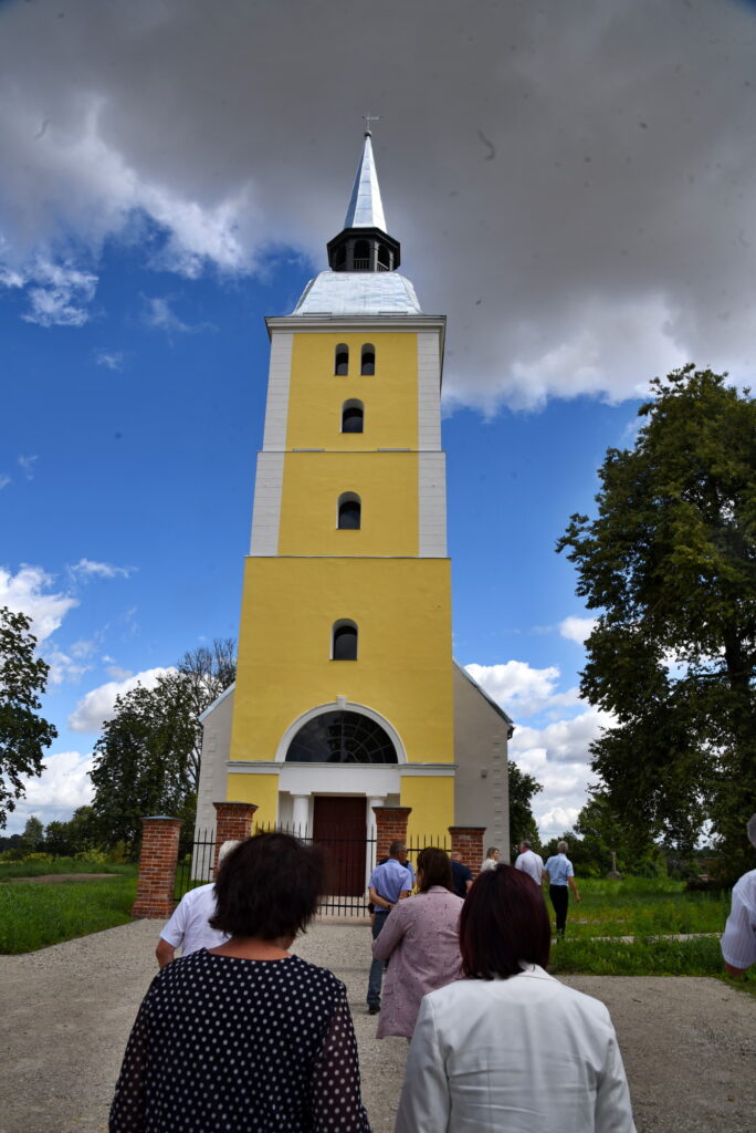 Nākamā pietura sagādāja pārsteigumu – gandrīz jau pabeigtā renovācija Mežotnes baznīcā. Šeit gan galvenais uzsvars ir uz nākotnes projektiem – potenciālo mācītāja muižas un pagrabu rekonstrukciju, iekļaujot tos senvietas ansamblī. Bija arī iespēja ieiet baznīcas telpās, kuras pārsteidza ar plašumu un izbūves īpatnībām, kā arī skatīt tornī esošo Mežotnes pilskalna un senpilsētas apmetnes maketu. Mežotnes pilskalna kompleksa apsaimniekotājs Kristaps Zēbergs sarunās ar deputātiem pieminēja nākotnes plānus gan baznīcas, gan kompleksa attīstībai, aprakstot plānotās ieceres un demonstrējot paveikto.