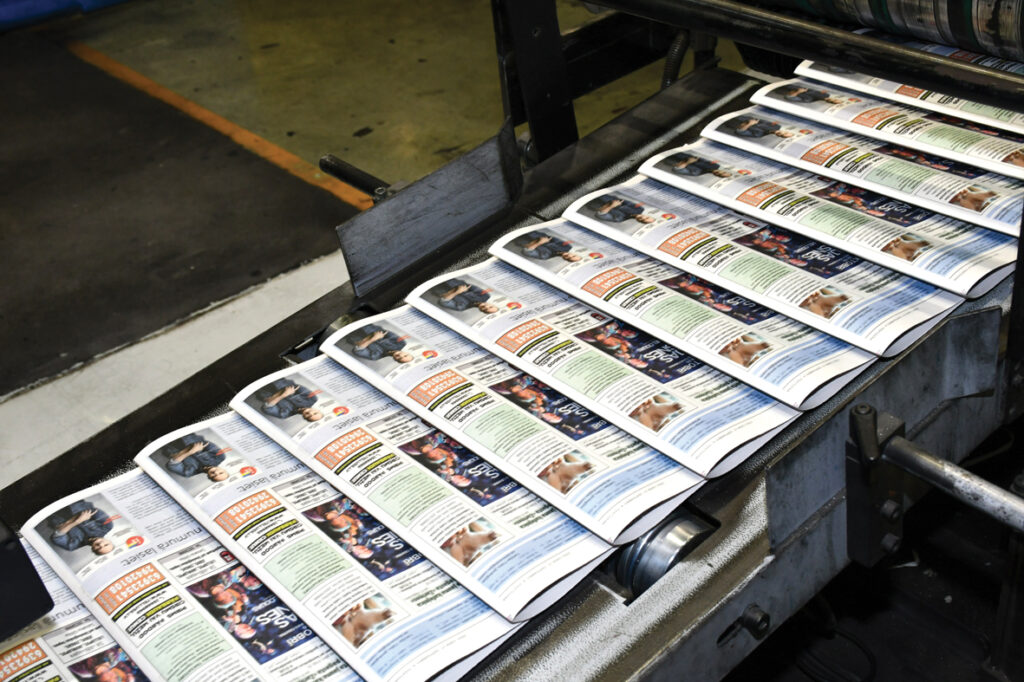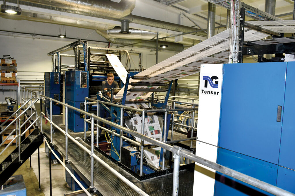 No lielās, skaļās drukāšanas mašīnas raiti izlido laikraksta eksemplāri, kurus uzreiz pārbauda vecākais operators – jāpārliecinās, ka process rit veiksmīgi. Ražošanas telpās pie griestiem ir mazas sliedītes, pa kurām raiti slīd un žāvējas mūsu svaigā avīzīte.