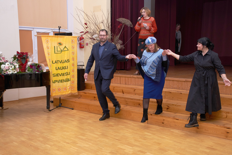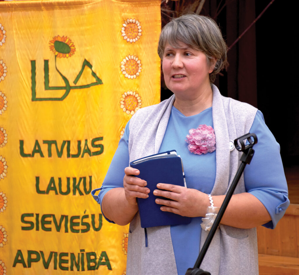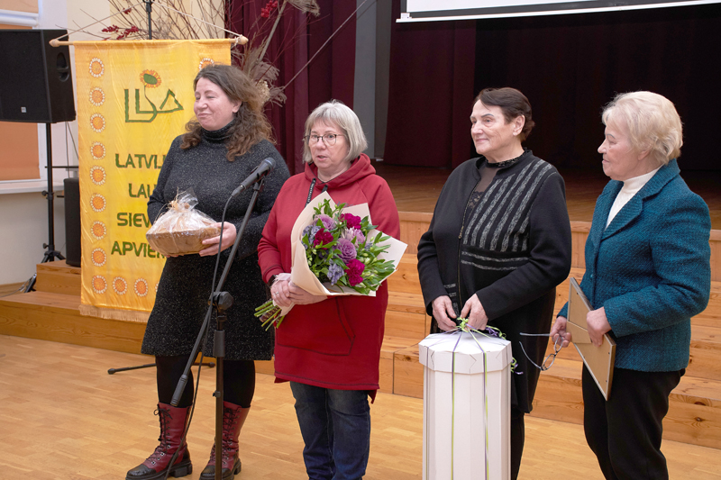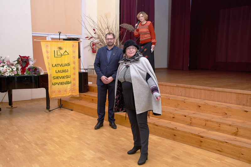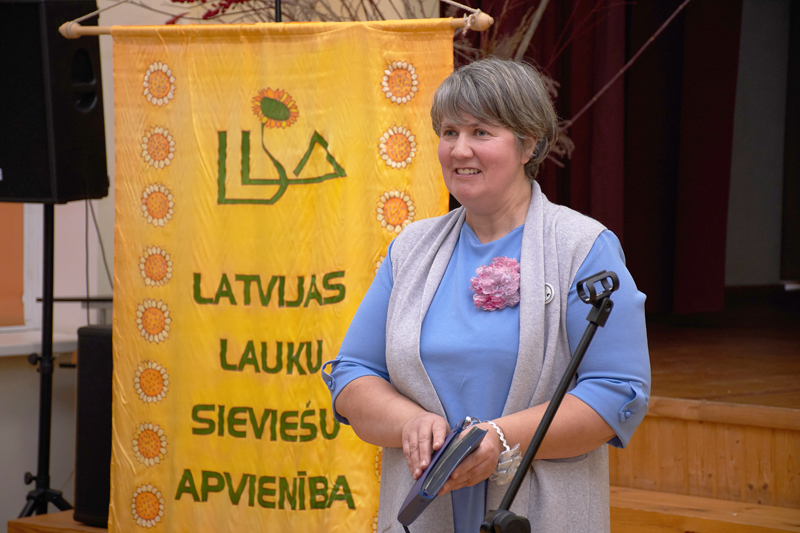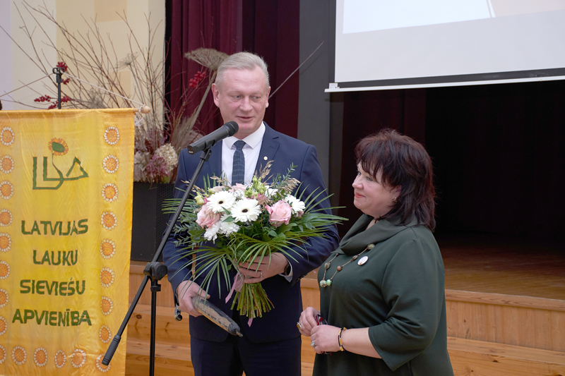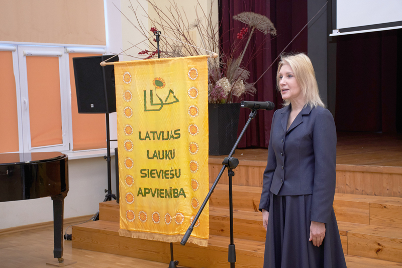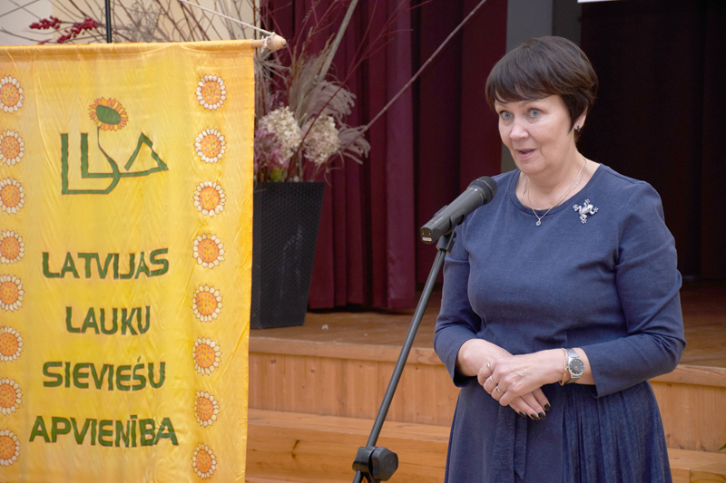 Zemkopības ministrijas Lauksaimniecības un lauku attīstības departamenta direktore Biruta Ingiļāvičute līdz ar sveicieniem no iestādes kolēģiem uzteica lauku sievas par arvien augošo līdzdalību un dāvāja Latvijā darinātas veltes.