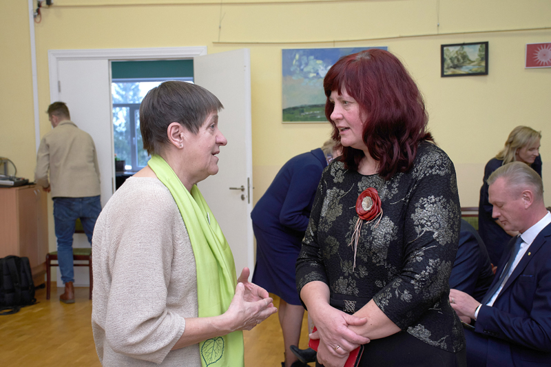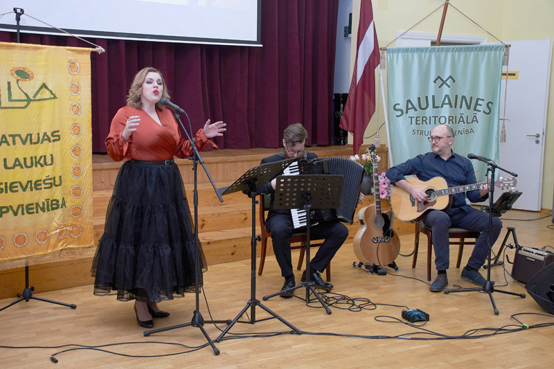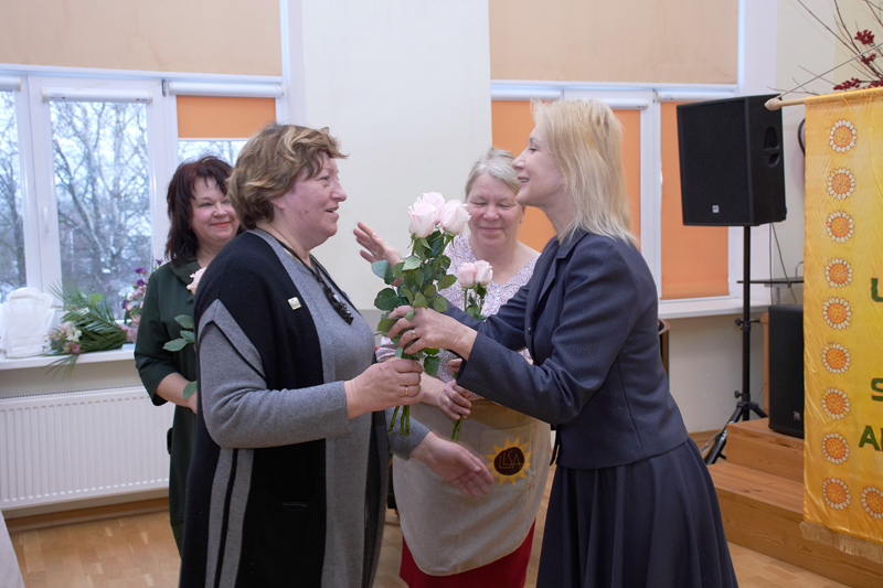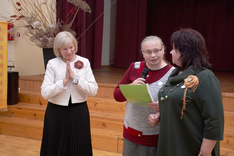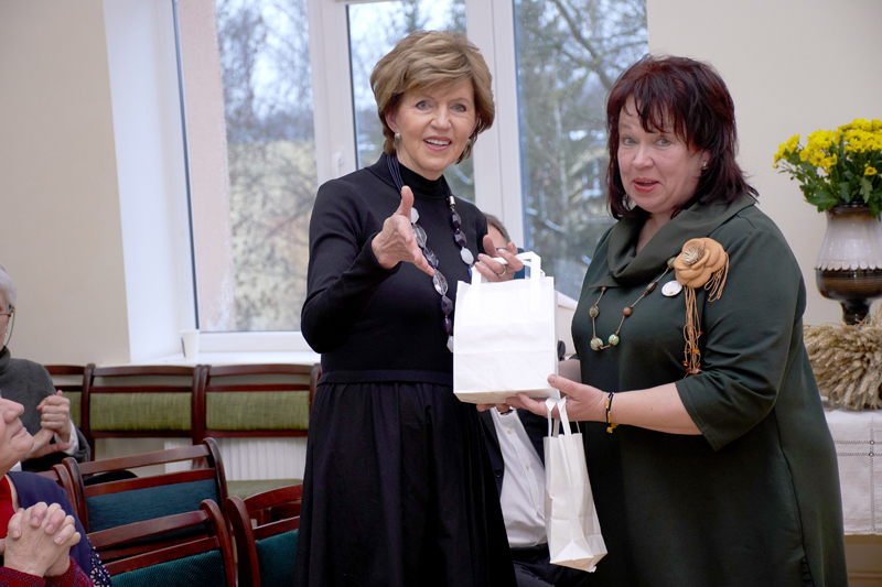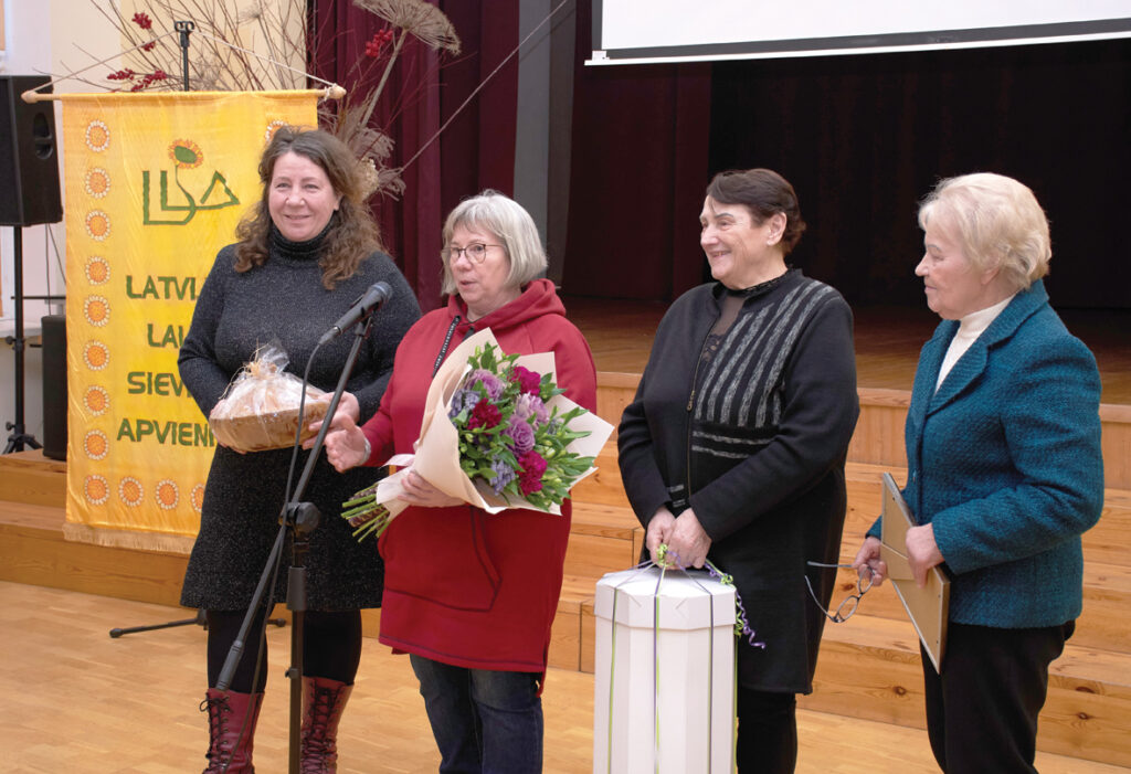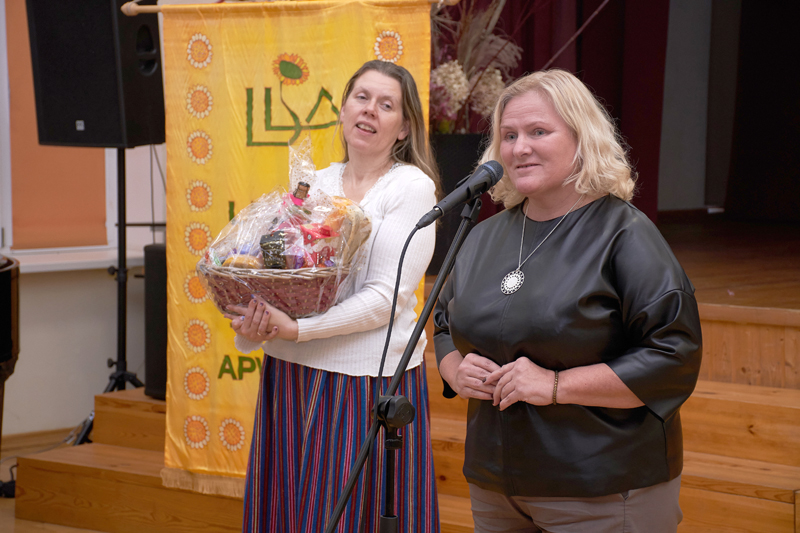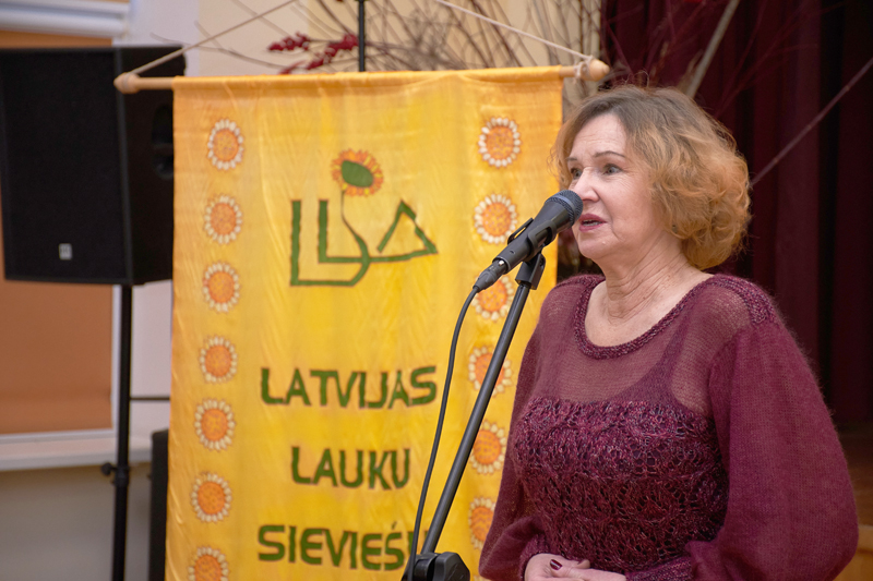 Zemkopības ministrijas Lauksaimniecības un lauku attīstības departamenta direktore Biruta Ingiļāvičute līdz ar sveicieniem no iestādes kolēģiem uzteica lauku sievas par arvien augošo līdzdalību un dāvāja Latvijā darinātas veltes.