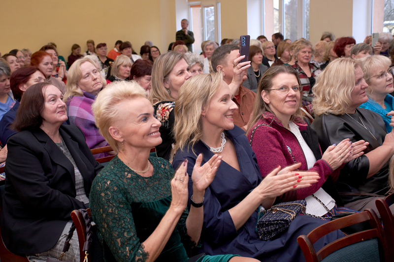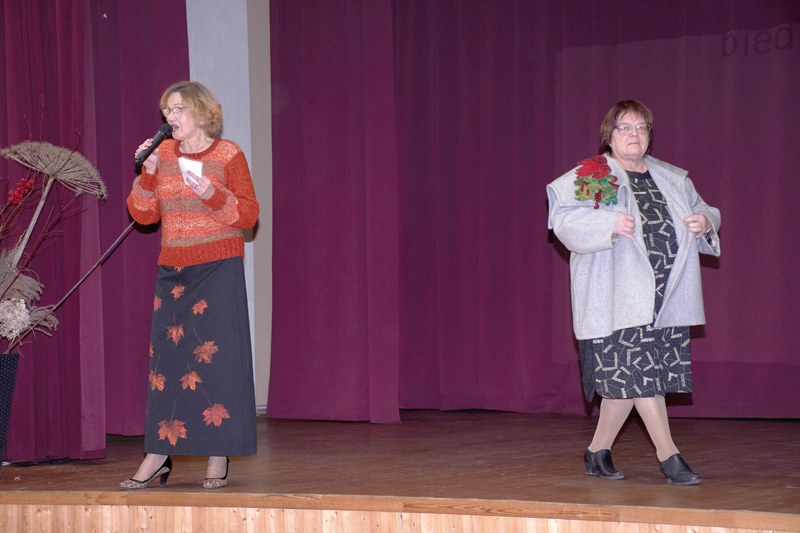 Tā kā viesu skaits pārsniedza 150, svētku koncertu, uzrunas un modes skati visi klausījās un vēroja Saulaines skolas lielajā zālē. Te aktīvās dāmas laipni sagaidīja direktore Iveta Leitlante un Codes sētas «Vaidelotes» saimniece Daira Jātniece ar pīrāgiem un plātsmaizēm, kas sevišķi tālāka ceļa braucējām bija pašā laikā.