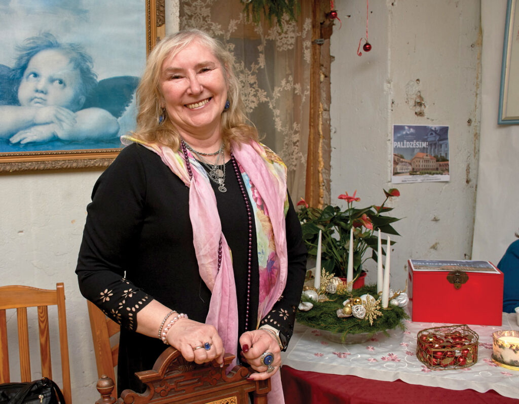 Kaucmindes saimnieca Aiva Dreimane-Ozolzīle ciemiņus sestdien uzņēma kopā ar vīru Ilvaru Ozolzīli – galveno būvnieku, kā pati raksturo sarunā ar «Bauskas Dzīvi». Aiva ir būvinženiere un arhitekte, un Kaucmindes mantojums bijis arī viņas dzimtā. Saimniece uzskata – Kaucmindi palīdz atjaunot te kopš ziedu laikiem saglabājies spēcīgais gars, un ar lauku sievām tas atkal atplauks krāšņi.
