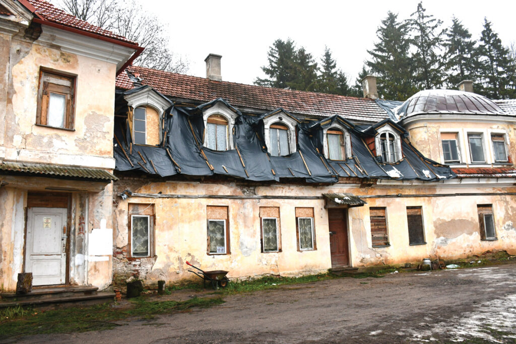 – Sākām būvdarbus pagājušā gada 24. oktobrī, jau vesels gads riņķī. Sākām no telpām, kas bija cik necik labas. Jumta pārsegumā gan bija caurums – no pirmā stāva caur griestiem un jumtu varēja redzēt zvaigznes. Uzlikām pārsegumu, nomainījām otrā stāva griestu pārsegumu, kas vienā telpā bija pilnībā izbrucis. Meistari vecos kārniņus noņēma, spāres atjaunoja, nomainīja koka konstrukcijas un uzlika kārniņus atpakaļ. Tā jumta daļa ir kārtībā. Tā soli pa solim kreisā spārna lokā ejam uz priekšu, pirmdien sāka strādāt jumta meistari, kas to sakārtos līdz lielajai mājai.