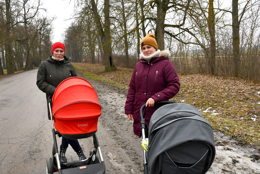 Pavasarīgo gaisu «ķer» arī pastaigā devušās jaunās māmiņas bērstelietes Jana Sapule, kam ratiņos guļ teju gadu vecā meitiņa Marta, un Janas māsa Mārīte Graviņa ar ratiņos dusošo gandrīz septiņus mēnešus veco Dārtiņu. Māsas jau 15 gadus dzīvojot Bērstelē, pašlaik katru dienu divas trīs stundas kopā veltot pastaigām. Jana atzīst, ka nedomājot pamest Rundāles pusi. Jaunais, nesen pieņemtais novada budžets vēl neesot skāris. Žēl, ka apstājusies kultūras dzīve, jaunā sieviete ir vidējās paaudzes deju kolektīva «Rundāle» dalībniece.