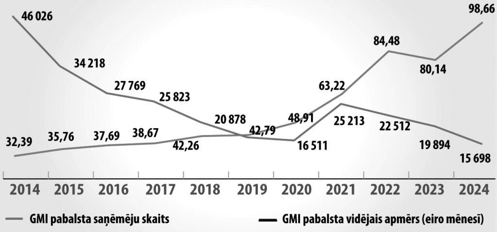 Lai arī kopš 2021. gadā sāktās reformas garantētā minimālā ienākuma (GMI) pabalsts ik gadu kāpj, Eiropas Pretnabadzības tīkla nacionālajā dalīborganizācijā «EAPN Latvia» vērtē, ka tas joprojām ir nepietiekams. Labklājības ministrijā (LM) rēķina, ka augošie minimālie ienākumi kompensē patēriņa cenu kāpumu.