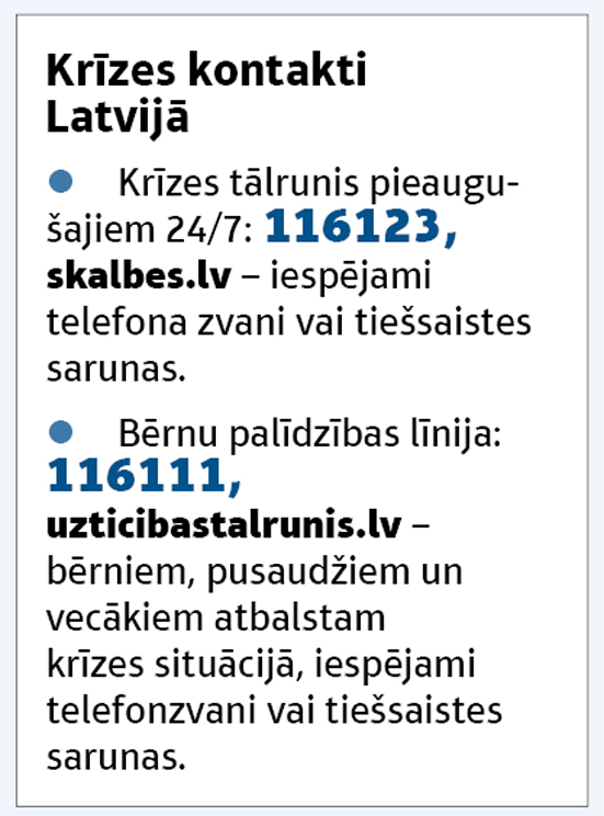 – Tā tas diemžēl ir. Tie cilvēki, kas to dara publiski, pat ja viņiem šāds nolūks ir, ar šo soli vairāk tomēr cenšas sameklēt palīdzību. Tas ir kā palīgā sauciens. Diemžēl ir situācijas, kad cilvēks īsteno savu nodomu, nesagaidot palīdzību. Es cenšos emocionāli distancēties no katra gadījuma. Ja katram dzīvošu līdzi, drīz vien pats varu psiholoģiski sabrukt un man pašam tad vajadzēs palīdzību.