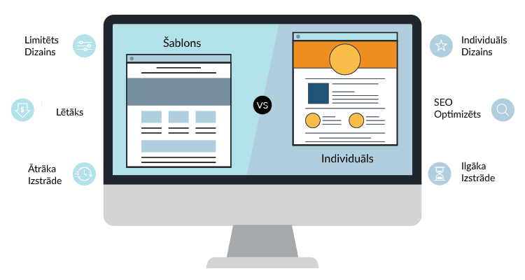 Individuāls dizains – ja Jums ir specifiskas prasības interneta veikala funkcionalitātē vai Jūsu zīmols nevar atļauties izmantot jau gatavu dizaina tēmu, kura ir izmantota daudzos citos interneta veikalos. Tad web dizaineris sagatavo individuālu dizainu atbilstoši Jūsu prasībām. Šādā veidā Jūs iegūsiet gan unikālu dizainu, gan visu nepieciešamo funkcionalitāti.