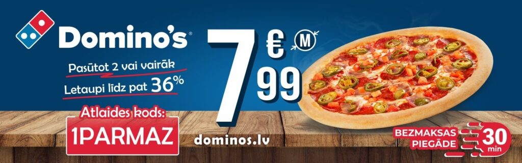 Domino’s Pizza Rīgā piedāvā akcijas gan picu piegādei uz mājām, gan picēriju klientiem. Iegādājieties divas vai vairākas vidējas picas no populārajām “Premium”, “Iecienītākā” vai “Klasika” kategorijām tikai par €7,99!