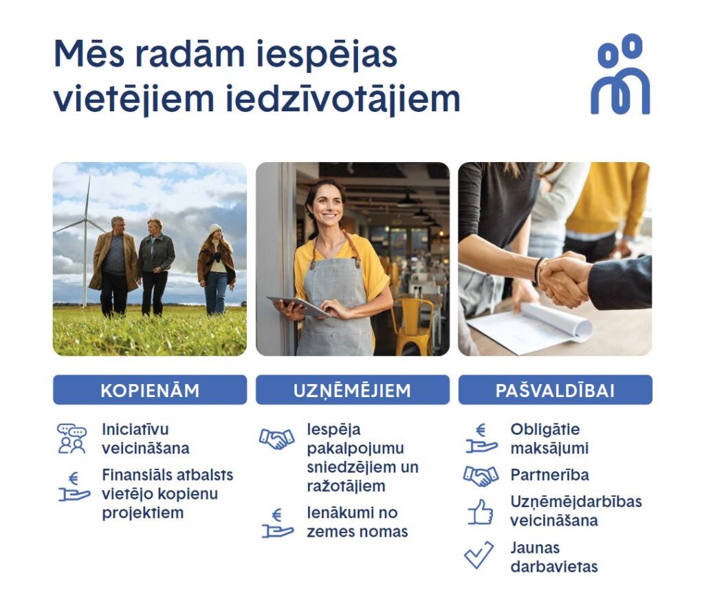Sadarbība ar vietējām kopienām ir Ignitis Renewables ilgtspējīgas attīstības pamats, jo uzņēmumam rūp vide, kurā tas darbojas. Tāpēc Ignitis Renewables ir atvērts vietējo iedzīvotāju un kopienu ieteikumiem par to, kā nākotnē varētu radīt daudz draudzīgāku un “zaļāku” vidi sev apkārt. Uzņēmumam ir svarīgi, lai tā īstenotie atjaunojamo energoresursu projekti, radītu papildus pievienoto vērtību visam reģionam, vietējām kopienām un uzņēmumiem.