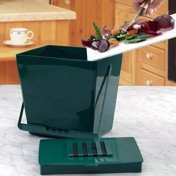 Anglijā ražotās komposta tvertnes Garland Caddy 5 L un 9 L ir kompaktas un piemērotas mājas kompostēšanai visu gadu. Šo komposta tvertņu priekšrocība ir to ārkārtīgi mazais izmērs un tas, ka tās neizdala nepatīkamu smaku, pateicoties integrētajiem smaku filtriem. Smaku filtrs saglabā nepatīkamās smakas 3-4 mēnešus, pēc to kalpošanas laika beigām papildus var iegādāties jaunus smaku filtrus. Vēl ērtākai un patīkamākai kompostēšanai iesakām iegādāties noārdāmus maisus. Noārdāmie maisi atvieglo sadzīves kompostēšanu, ir videi draudzīgi, sadalās 45 dienās un neatstāj negatīvu ietekmi uz kompostēšanas procesu.