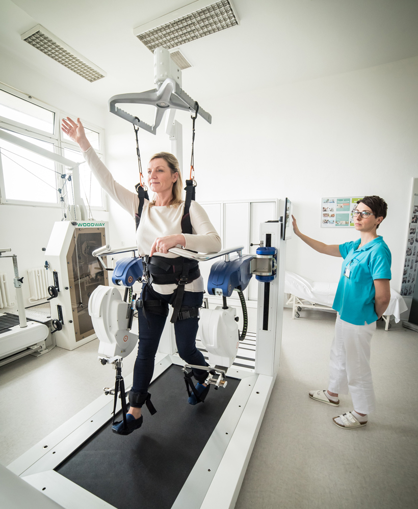 Robotizētā gaitas terapija palīdz cilvēkiem pēc insulta vai traumām soli pa solim atgūt staigāšanu;
