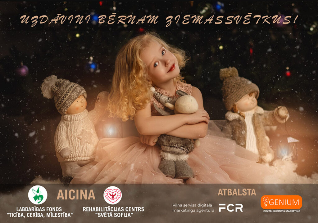 Visā Latvijā ir daudz bērnu ar smagām diagnozēm un īpašām vajadzībām, kuru sapņus piepildīt Ziemassvētkos aicina rehabilitācijas centrs “Svētā Sofija” un labdarības fonds “Ticība, Cerība, Mīlestība”.