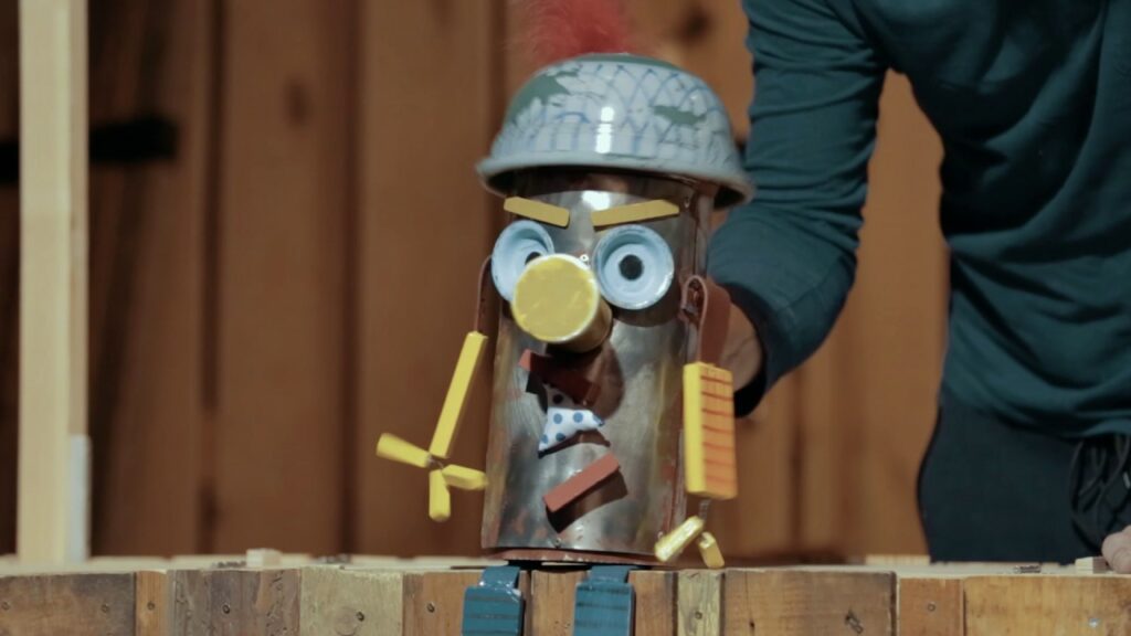 “Sergeja Timofejeva pasaka Bruņinieks, kuram sāpēja zobi, ko dramatizējis un iestudējis Edgars Kaufelds, ir vienkārša un druscītiņ pamācoša. Bruņinieks, kura zobu sāpju iemesls ir simtos mērāmais apēsto konfekšu skaits, apmulst, ka sāpes ir viņā pašā un cīnīties nav ar ko, jo nav ārējā ienaidnieka. Pēc izmisīgās cīņas ar konfektēm, vien otrā cēliena sākumā uz divriteņa atbrauc meitenīte, kas parāda Bruņiniekam pareizo ceļu pie zobārstes.