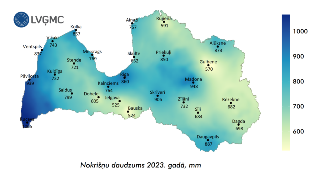Lai gan pagājušā gada maijs bija sausākais novērojumu vēsturē un jūnijs bija otrais sausākais, gada kopējais nokrišņu daudzums par 11% pārsniedza normu, un 2023.gads valstī vidēji bija mitrākais kopš 2017.gada.