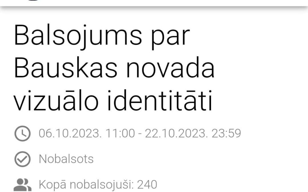 Bauskas novada iedzīvotāji tiek aicināti līdz 22. oktobrim balsot par pieņemamāko variantu. To var izdarīt mobilajā lietotnē “Bauskas novads” – sadaļā “Aptaujas”. Lietotni “Bauskas novads” bez maksas iespējams lejupielādēt aplikācijā Google Play (Android ierīcēs) un App Store (iOS ierīcēs).