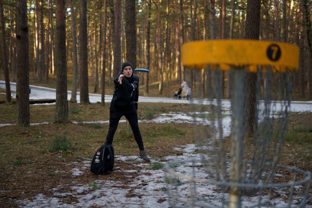 Lai gan aktīvā sezona beidzas oktobrī, ne visi pārtrauc spēlēt disku golfu gada aukstākajos mēnešos. Var spēlēt arī ziemā. Kad vairs nav tas vecums, lai brauktu no kalniņa ar ragaviņām un gribas kādu alternatīvu. Foto:lsm.lv