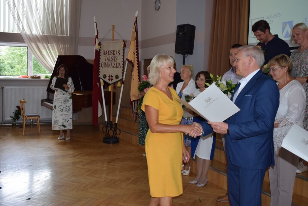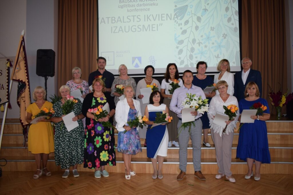 Bauskas Valsts ģimnāzijā aizvadīta pedagogu konference, jauno 2023./2024. mācību gadu sagaidot. Konferencē gan nosauca jauno izglītības nodaļas vadītāju – Baibu Šuminu, gan apbalvoja pedagogus un informēja par izglītības nozares jaunumiem.