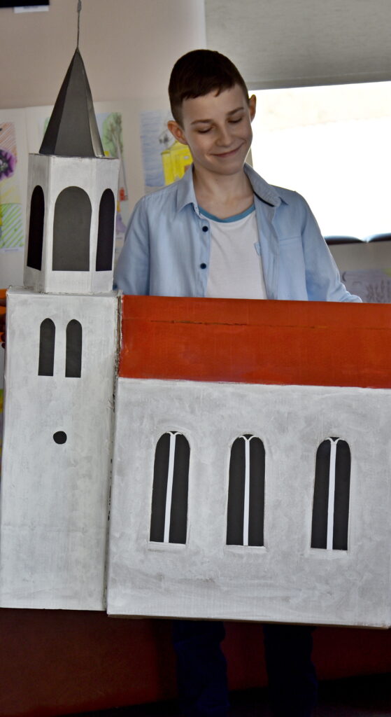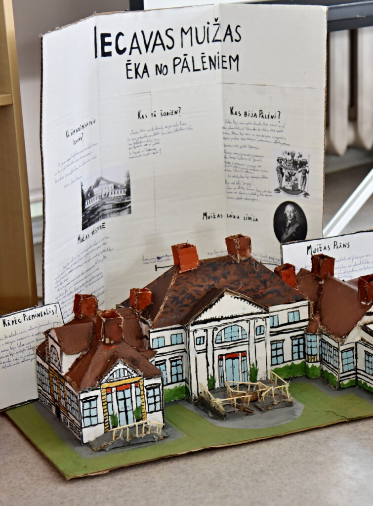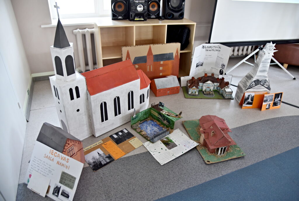 Savukārt visvairāk vizuālo materiālu bija sagatavojuši Iecavas vidusskolas audzēkņi, stāstot par Iecavas kultūrvēstures objektiem – ēkām un vietām. «Maketu taisīju piecus vakarus. Vizuālo materiālu ņēmu no bibliotēkas grāmatas. Maketus līdz šim nebiju taisījis, tas ir pirmais. Bija forši, bet nogurdinoši,» stāsta komandas dalībnieks Roberts Putniņš.
