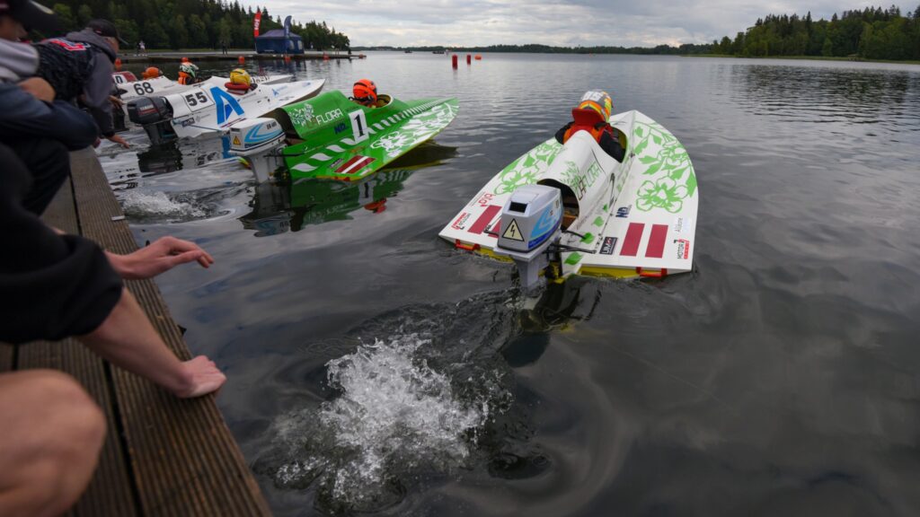 Latvijas čempionātā vēl aizvien notiek sacensības ar JT250 klases ātrumlaivām jauniešiem. Komandas «Mēmeles sports» sastāvā debitēja Rinalds Latūns. Visos braucienos viņš finišēja netālu aiz līdera Otto Varkaļa, pārliecinoši izcīnot otro vietu.