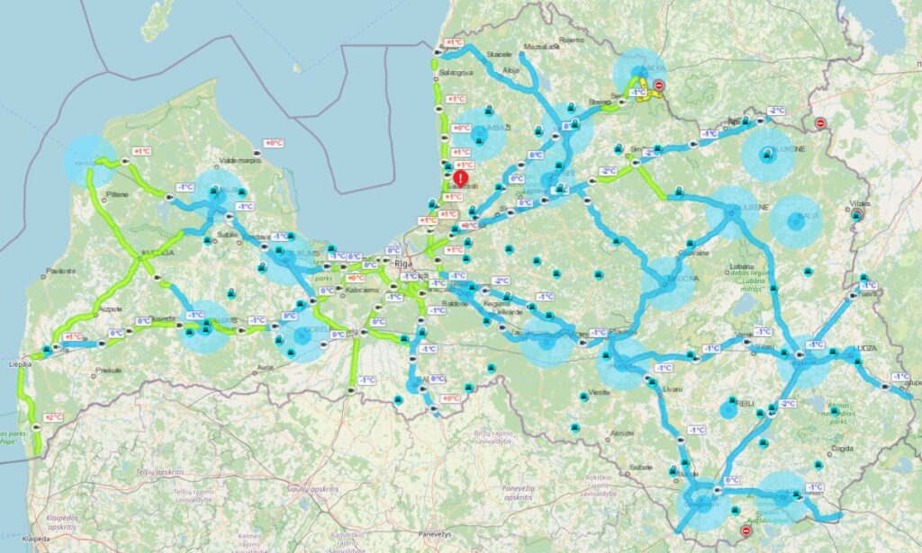 Uz reģionālajiem autoceļiem apgrūtināta braukšana ir visā Latvijā, izņemot Ventspils, Liepājas, Rīgas un Jelgavas apkārtni.